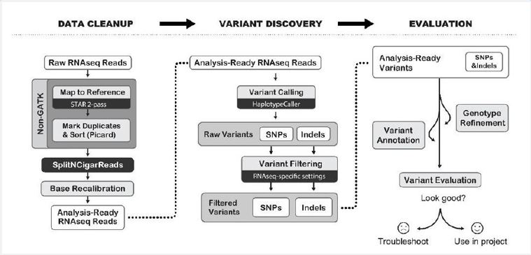 SplitNCigarReads show the input file is BAM and the output file is BAM file in Figure 2b. Then, the input file is shown as a BAM file that creates different variants in the Variant Calling process. The output data about variant calling is a VCF or GVCF file in supplement try materials of Figure 2s, Table 1s.