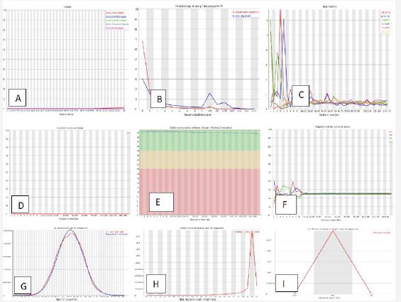 In addition to the list of readings, Fast QC reported information on the quality and content of the bases, the length of the readings, as well as the presence of ambiguous and doubled bases. In this study, 7 samples including 3 cancer samples were reported and 4 control samples. The result of controlling the quality of the data is shown in Figures 1 and S1. (a-f). Each figure contains 9 images. In the following, we will explain each shape.