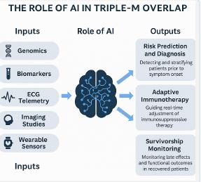 Artificial Intelligence (AI) provides a transformative opportunity to unify these domains. By integrating multimodal data streams—ranging from genomics and biomarkers to imaging, electrophysiology, and digital health—AI can enable predictive risk stratification, augment diagnostic accuracy, guide adaptive immunosuppression, and extend monitoring into survivorship. Federated learning approaches, trained across international registries, may overcome data scarcity while protecting patient privacy.